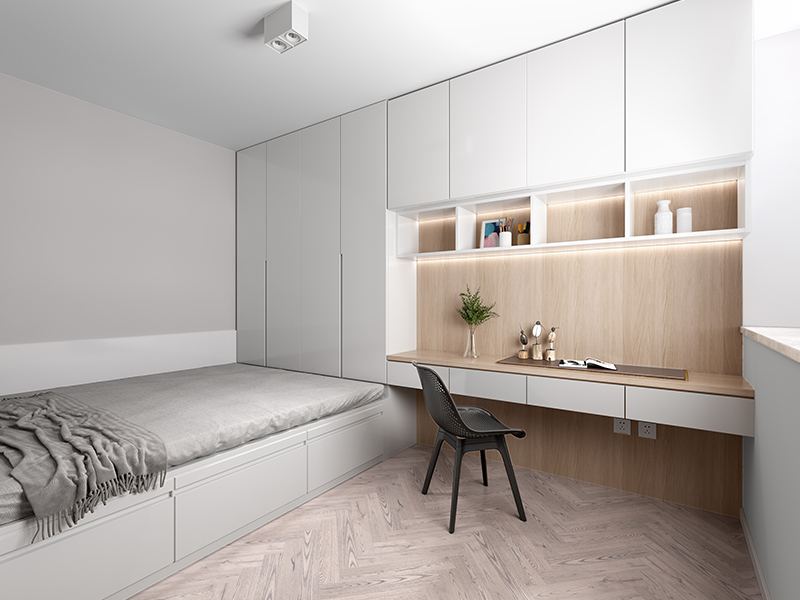 儿童房满足收纳和休息 同时要满足学习功能 原木和白色搭配,温润舒适。